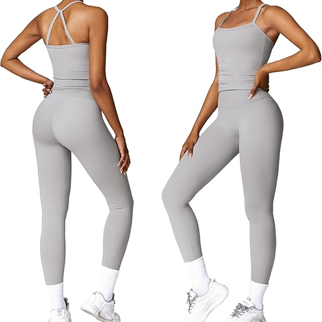 OEM Custom Logo 2-Piece High Quality Gym Legging Bra Set for Women Soft Yoga Sport Plus Size Bra and Legging with Solid Pattern