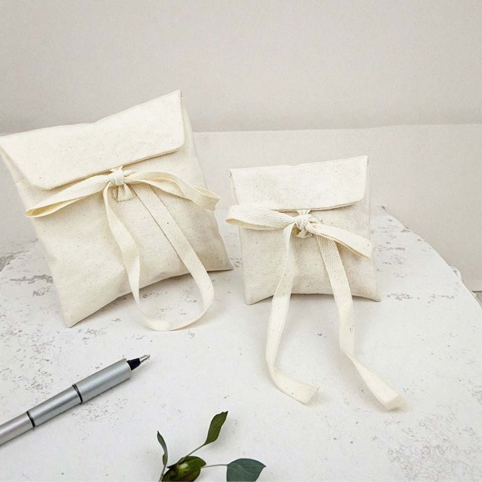 Custom Logo Organic Cotton Envelope Pouch Reusable Dust Bag for Clothing Shoes Recyclable Feature Socks Packaging Flap Watches