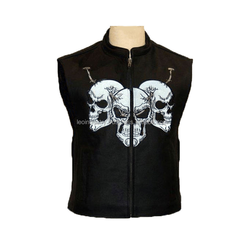 Custom Logo Original Cow Leather V-Neck Vest with Warm Multi-Pockets for Motor Bikers Winter Patchwork Vests