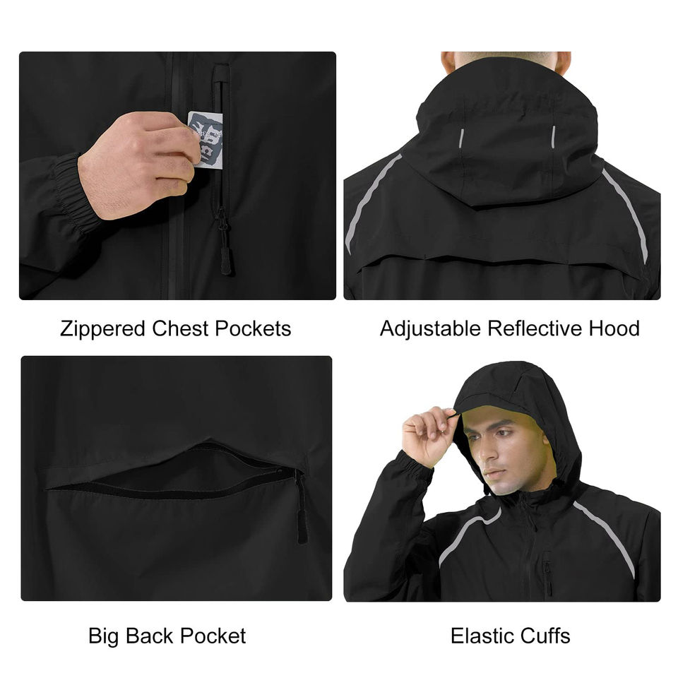 Custom Logo Outdoor Hiking Men Waterproof Sports Rain Running Jacket Reflective Windbreaker Packable Golf Cycling Hood Jackets