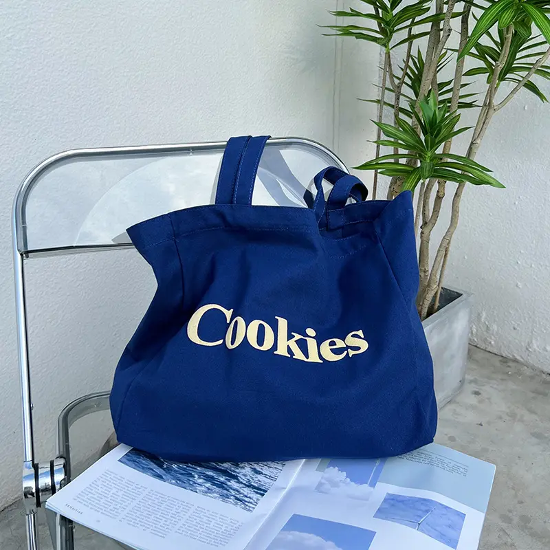 Women's Oversize Large Weekend Shopping Tote Bag Custom Logo Black Canvas Cotton Fashionable Letter Pattern