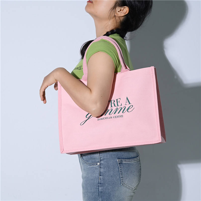 Women's Oversize Large Weekend Canvas Cotton Shopping Tote Bag with Custom Black Logo Fashionable Letter Pattern