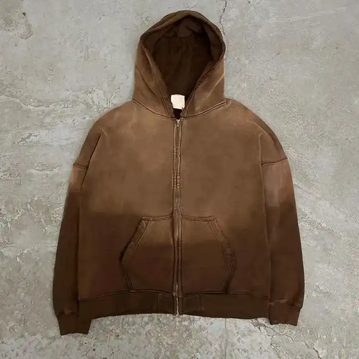 Custom Logo Oversized Acid Wash Hoodie Sweatpants Set Stone Wash Style Cotton Zippered Destroy Sun Fade Plus Size Winter Vintage