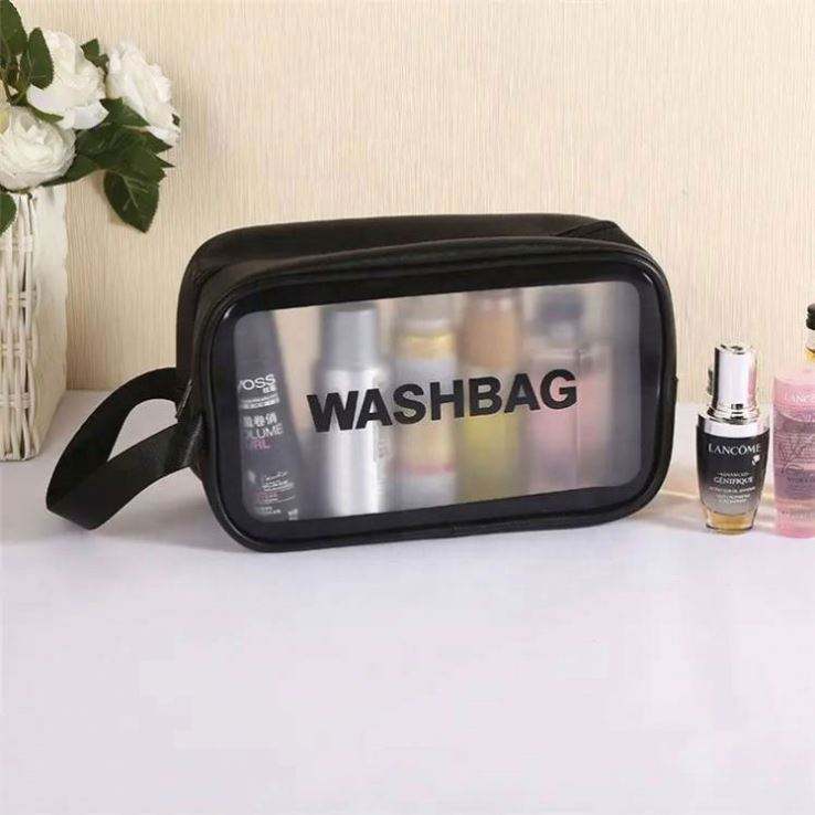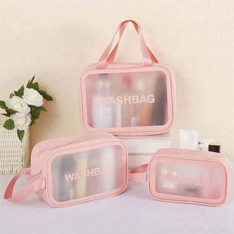 Custom Logo PU Leather PVC Transparent Clear Zipper Beauty Organizer Storage Bath Wash Cosmetic Makeup Bag
