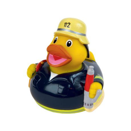 Custom Logo PVC Rubber Duck Firefighter Baby Bath Toy for Boys Squeaky Animal Toy for Bath Time Playing