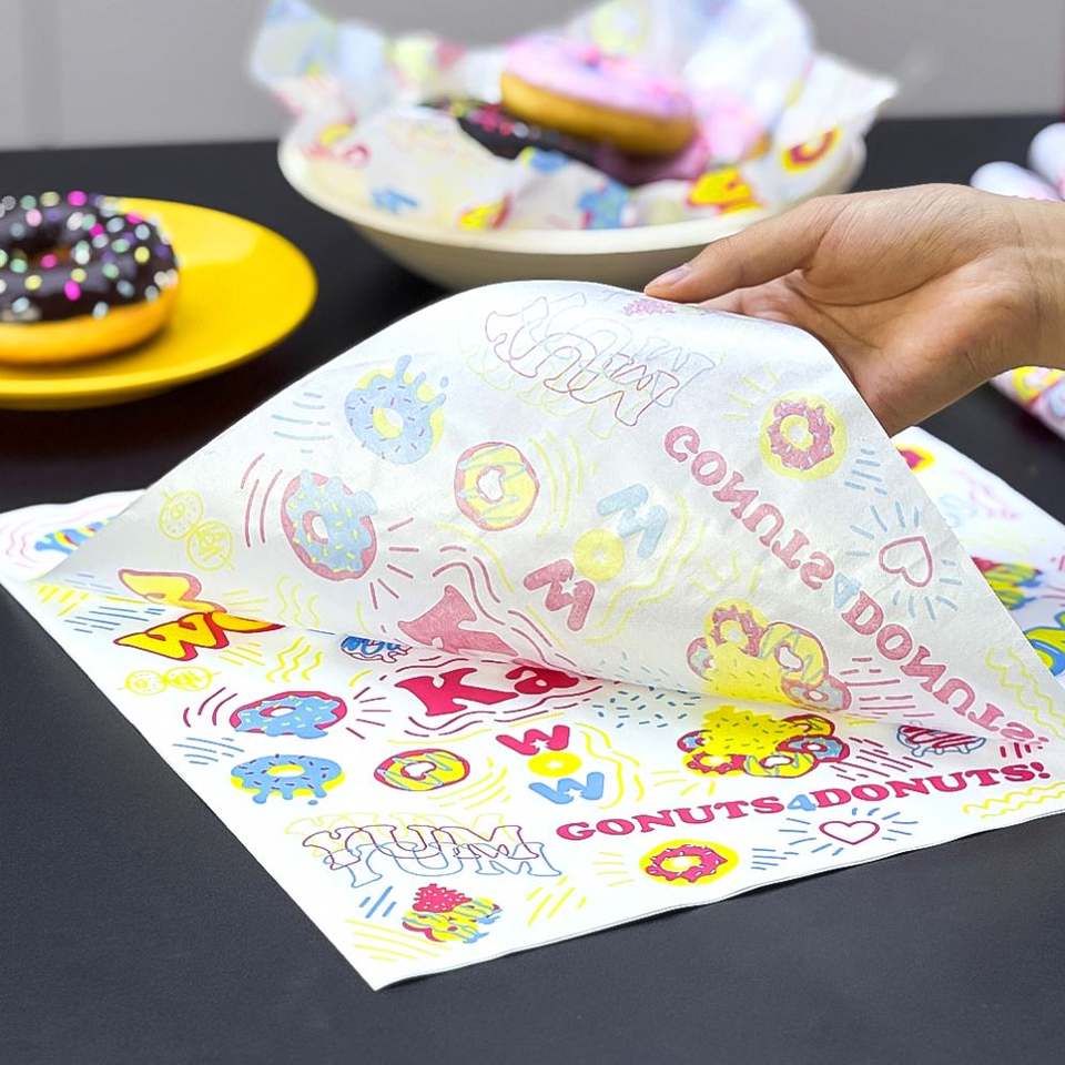 Custom Logo PE Coated Greaseproof Parchment Wrapping Paper for Food Packaging Deli Bread Jelly & Snacks