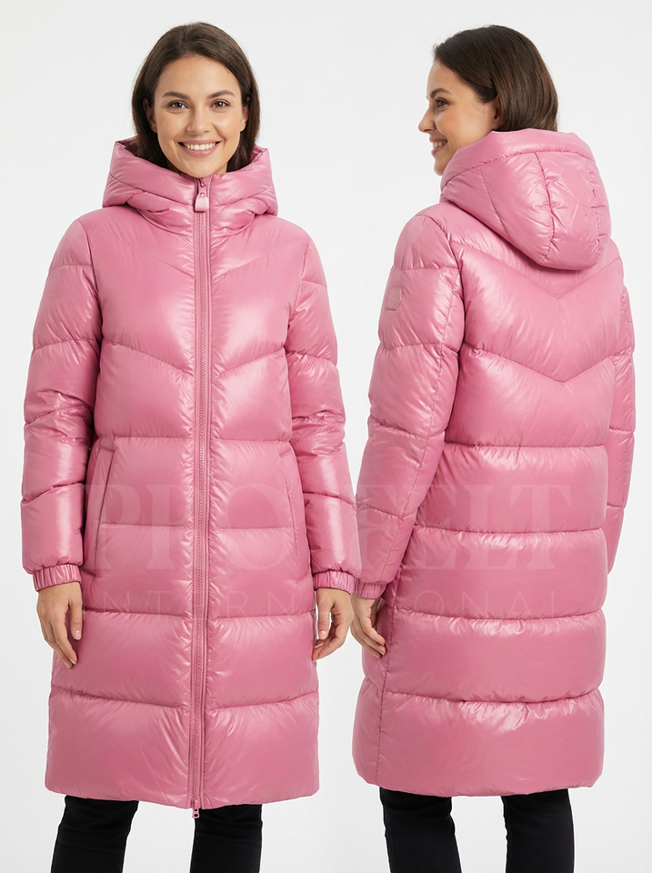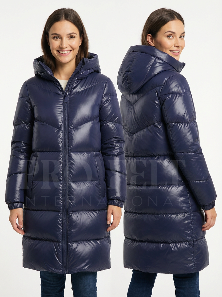 Custom Logo Patch Style Padded Raincoat Black Glossy Quilted Down Jacket with Hood Waterproof Polyamide Outerwear Puffer Coats