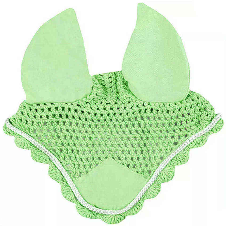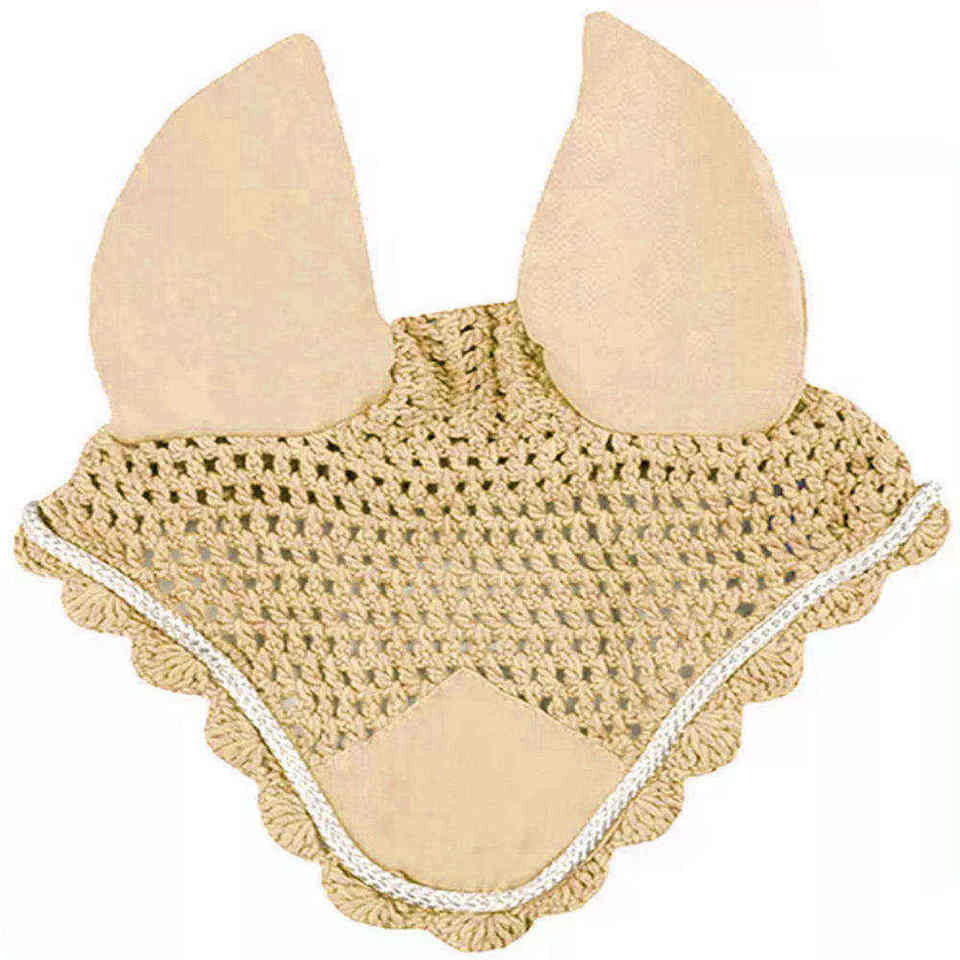 Custom Logo Pearl Horse Ear Bonnet Soft Crochet Fly Veil Comfortable Fit for Equestrian Riding and Training Performance
