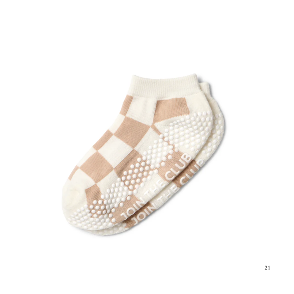 Custom Logo Pilates Grip Socks Beige Checkered Design Crew Yoga Women's Socks Anti-Slip Breathable Knitted for Daily Use