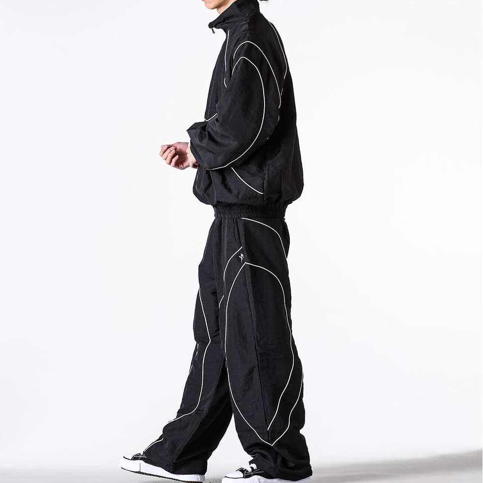 Custom Logo Nylon Zip Set Unisex Reflective Winter Windbreaker Tracksuit Hooded Reversible Lightweight Black Free Sample