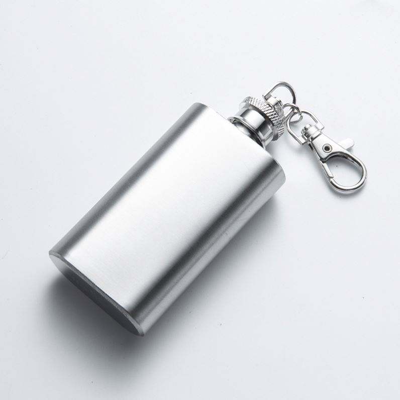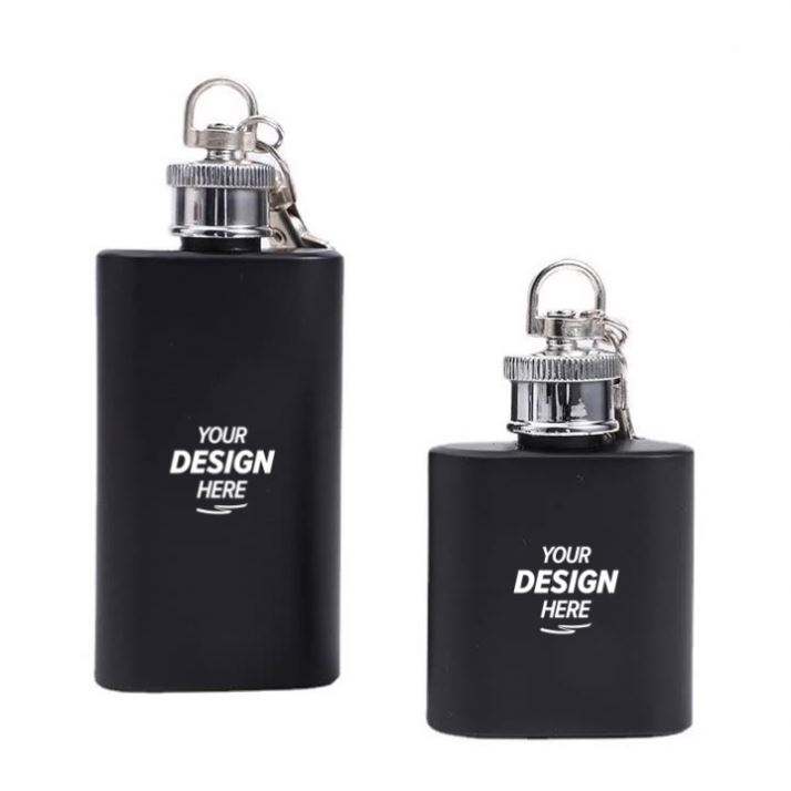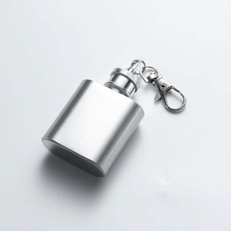 Custom Logo Portable Stainless Steel Mini Hip Flask Keychain 1oz & 2oz Alcohol Whisky Wine Pot with Custom Logo 2025