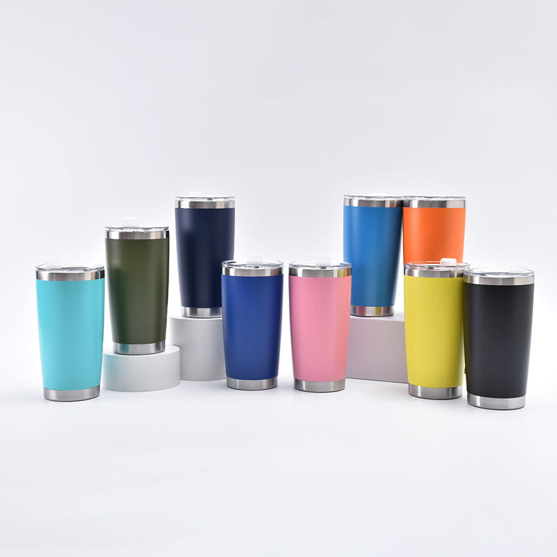 Custom Logo Powder Coated Stainless Steel Double Wall Vacuum Insulated BPA Free Leak-Proof 20 Oz Travel Coffee Tumbler