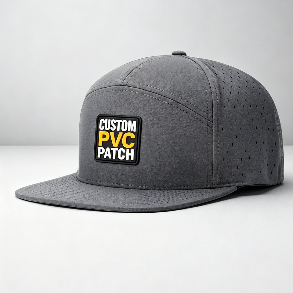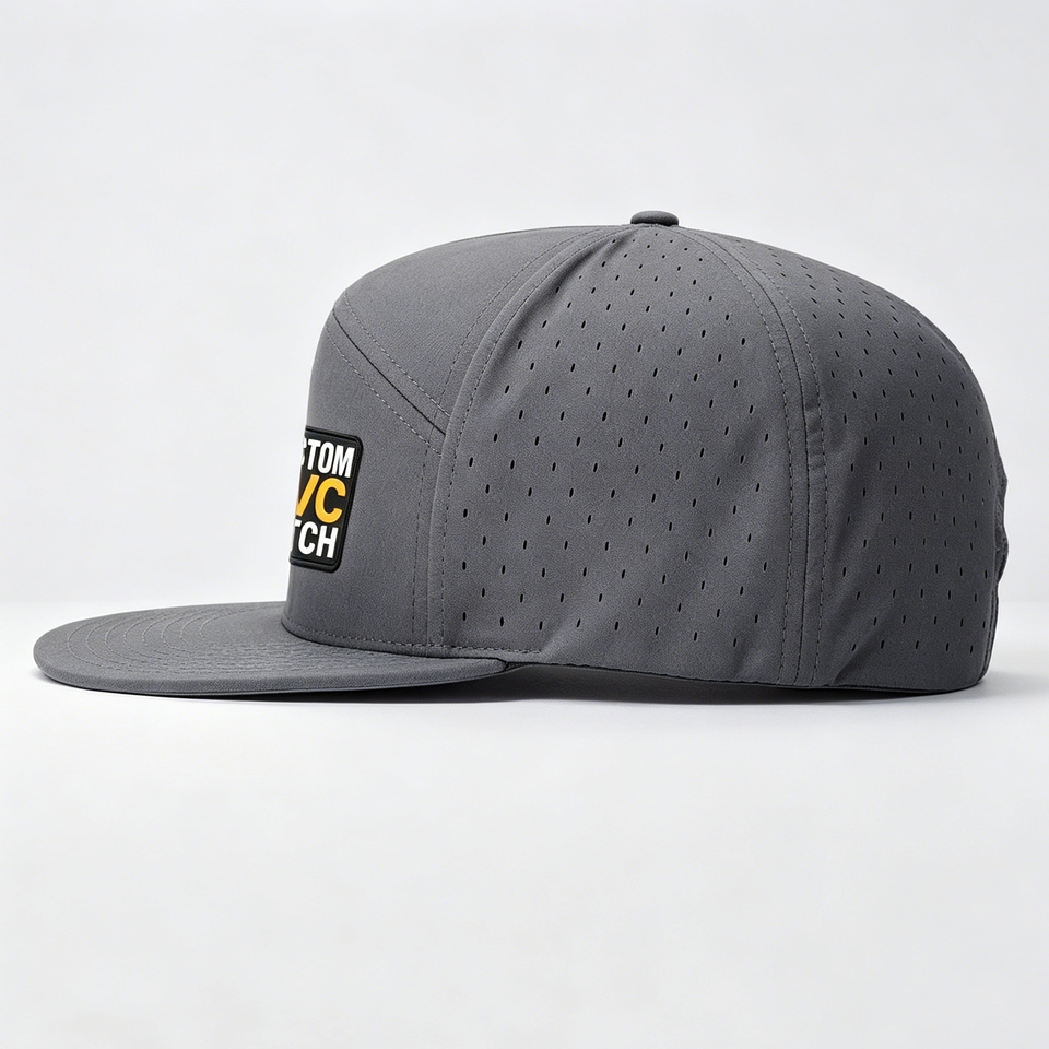 Custom Logo Premium PVC Silicone Patch 7 Panel Baseball Cap Laser Cut Perforated Design Men Waterproof Lightweight Trucker Hat