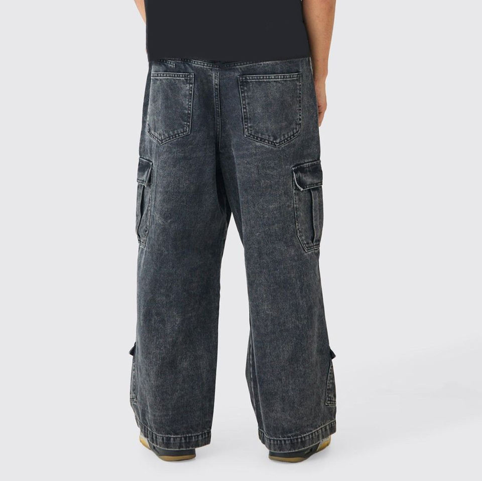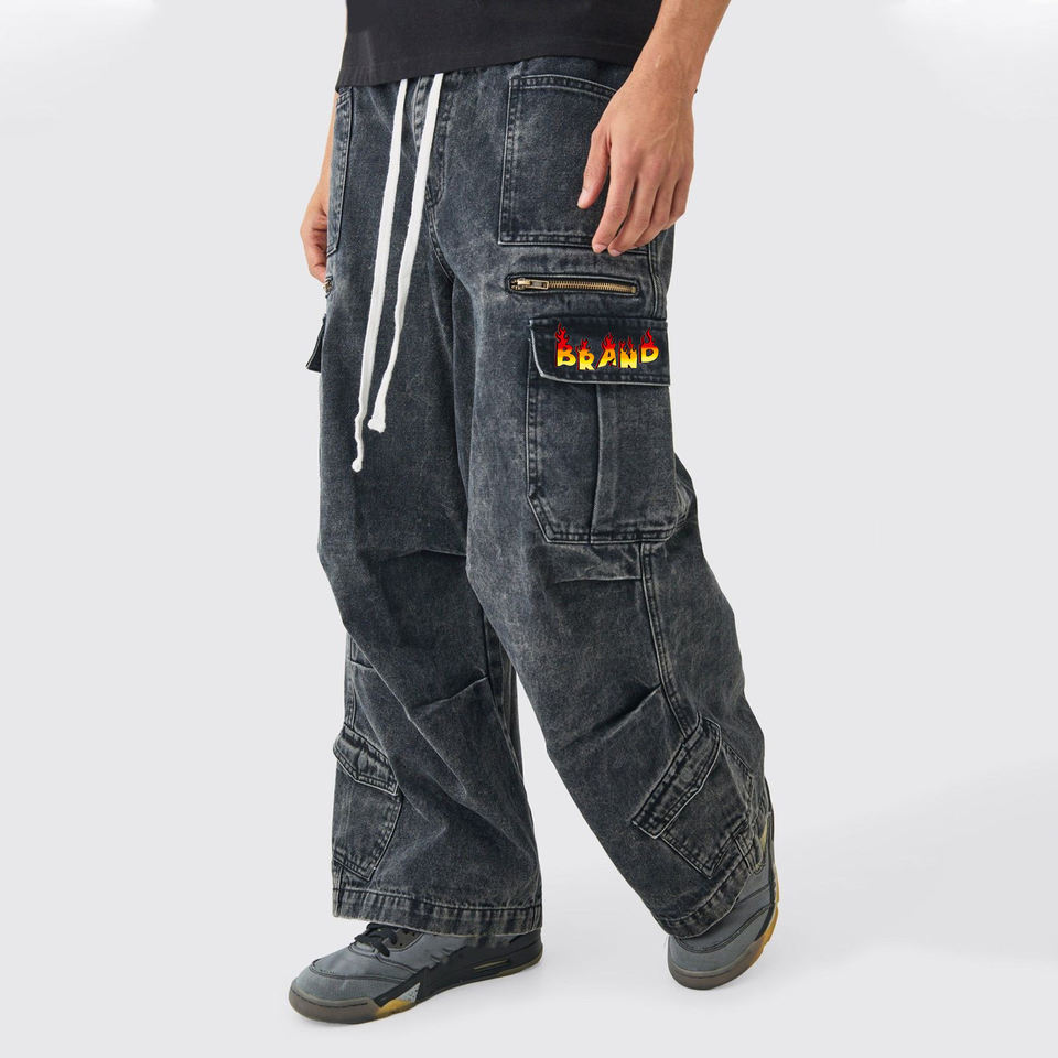 Custom Logo Premium Quality Denim Jeans Straight Leg Men's Washed Embroidered Vintage Multiple Pockets Hip Hop Streetwear Pants
