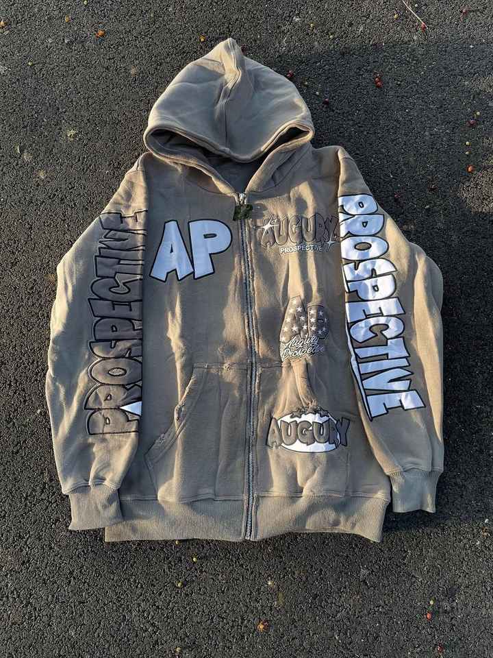 Custom Logo Print 420 Grams Zip-Up Hoodies High Quality Heavyweight Cotton Fleece Oversized Zipper Hoodies