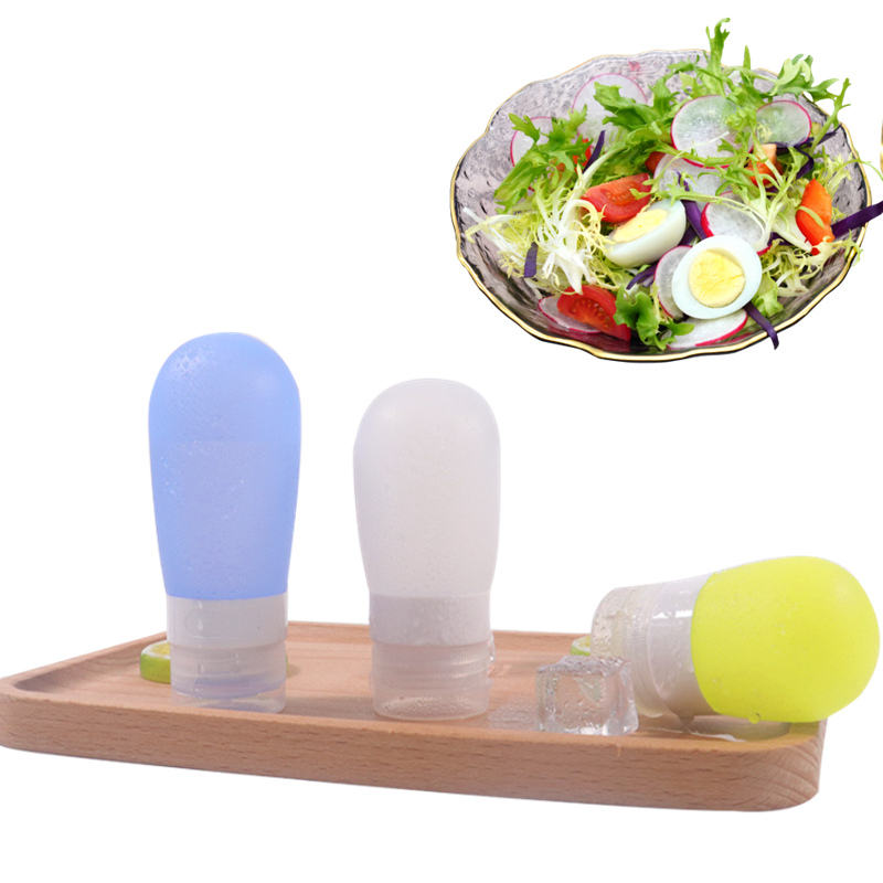 Custom Logo Print BPA Plastic Free Portable 38ml/60ml/80ml Mini Silicone Salad Dressing Bottle Seal Travel Containers for Sauce
