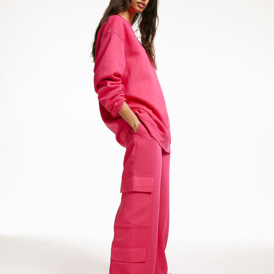 Custom Logo Print Embroidery Oversized Crew Neck Drop Shoulder Casual Women Long Sweatshirt