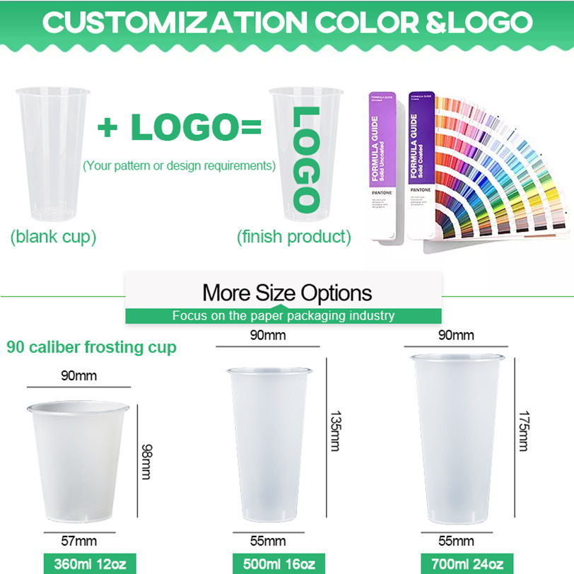 Custom Logo Print PET 12/14/16/20/24oz Round Bottom Bubble Tea Ice Coffee Plastic Cups With Lids