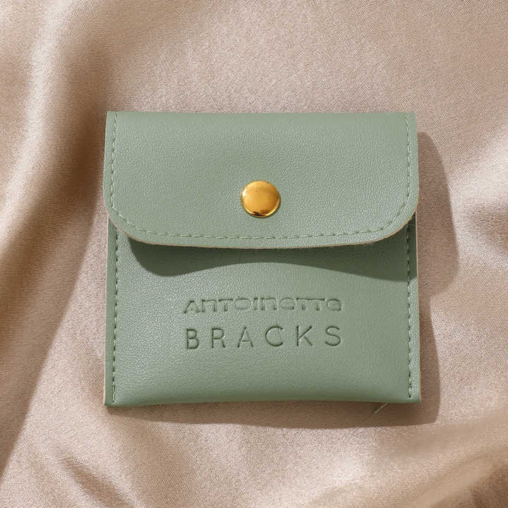 Custom Logo Print PU Bag Premium PU Faux Leather Button Pouches for Jewelry or Gift Packaging Leather Jewelry Pouch
