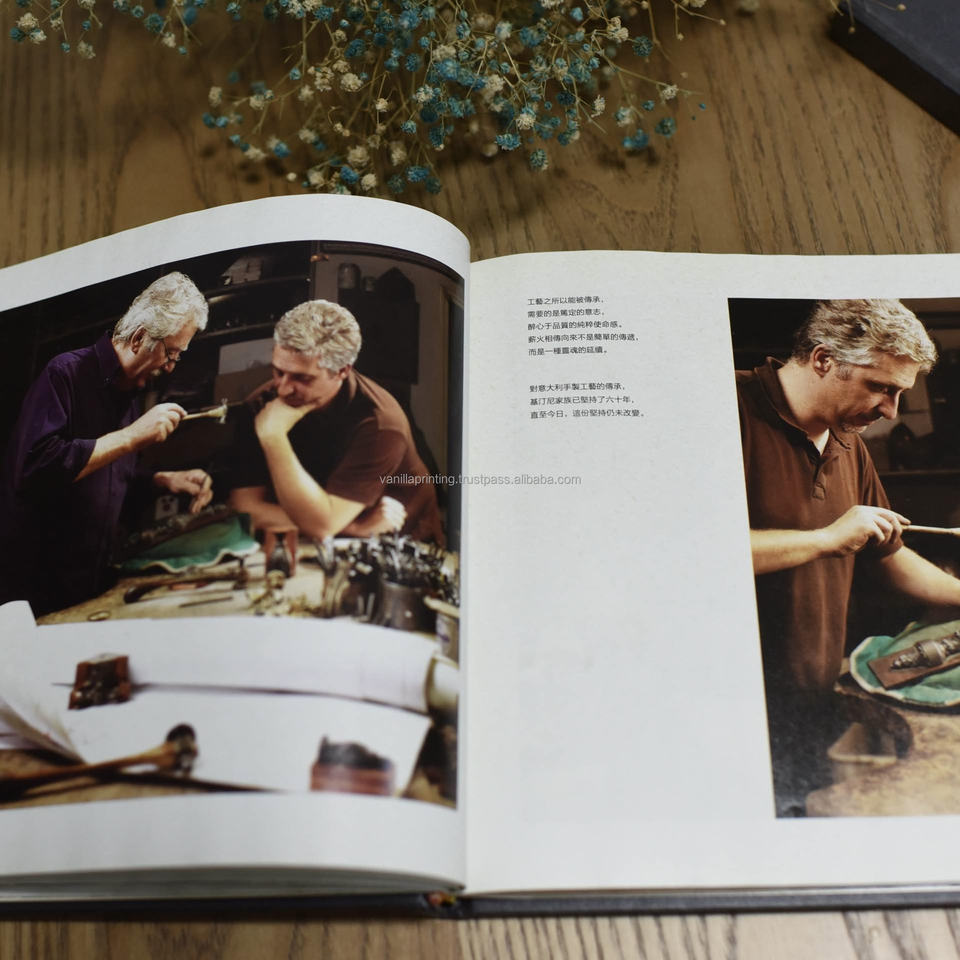 Custom Logo Printed A5 A4 Hand Cover Book Offset Paper/Cardboard Perfect Binding Embossing Surface Finishing Saddle Stiching