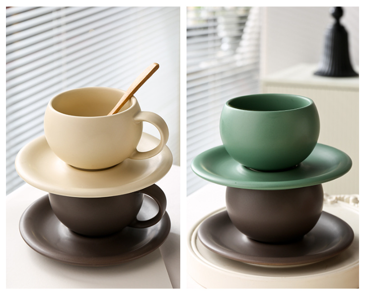 Custom Logo Printed Commercial Ceramic Coffee Cup and Saucer Set Durable Restaurant Tableware for Tea Cups & Saucers