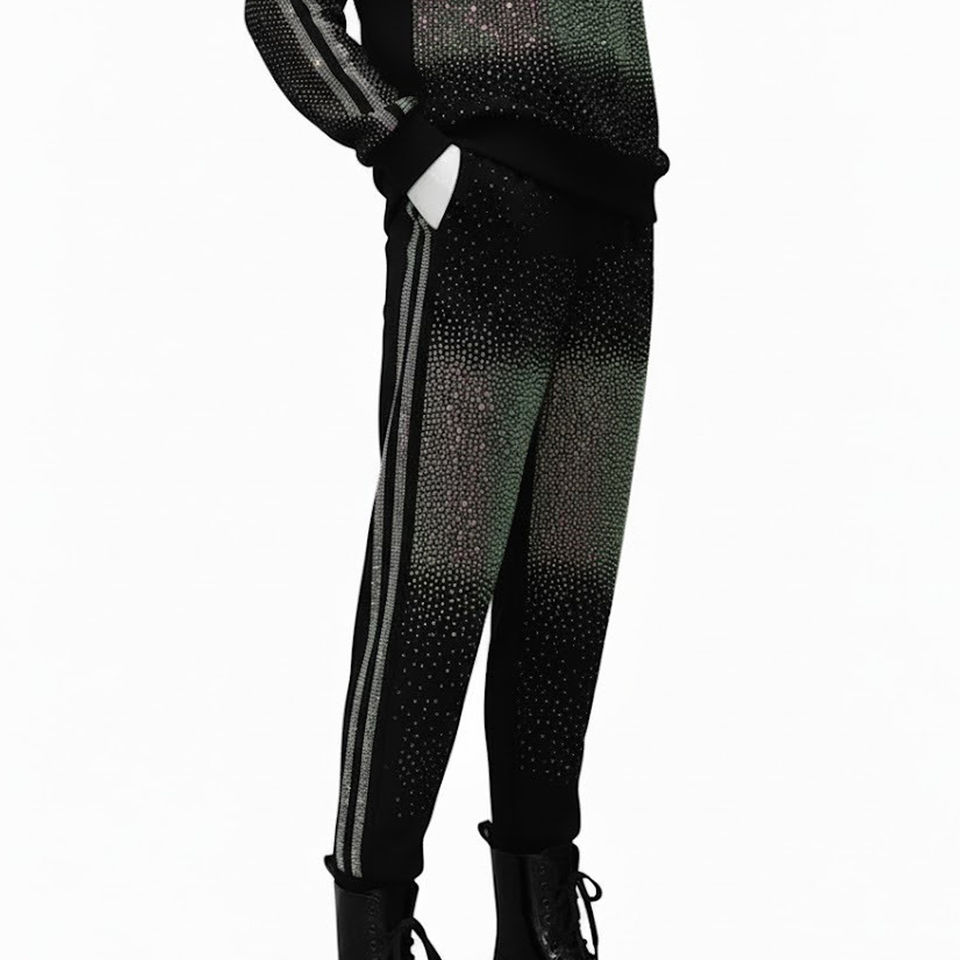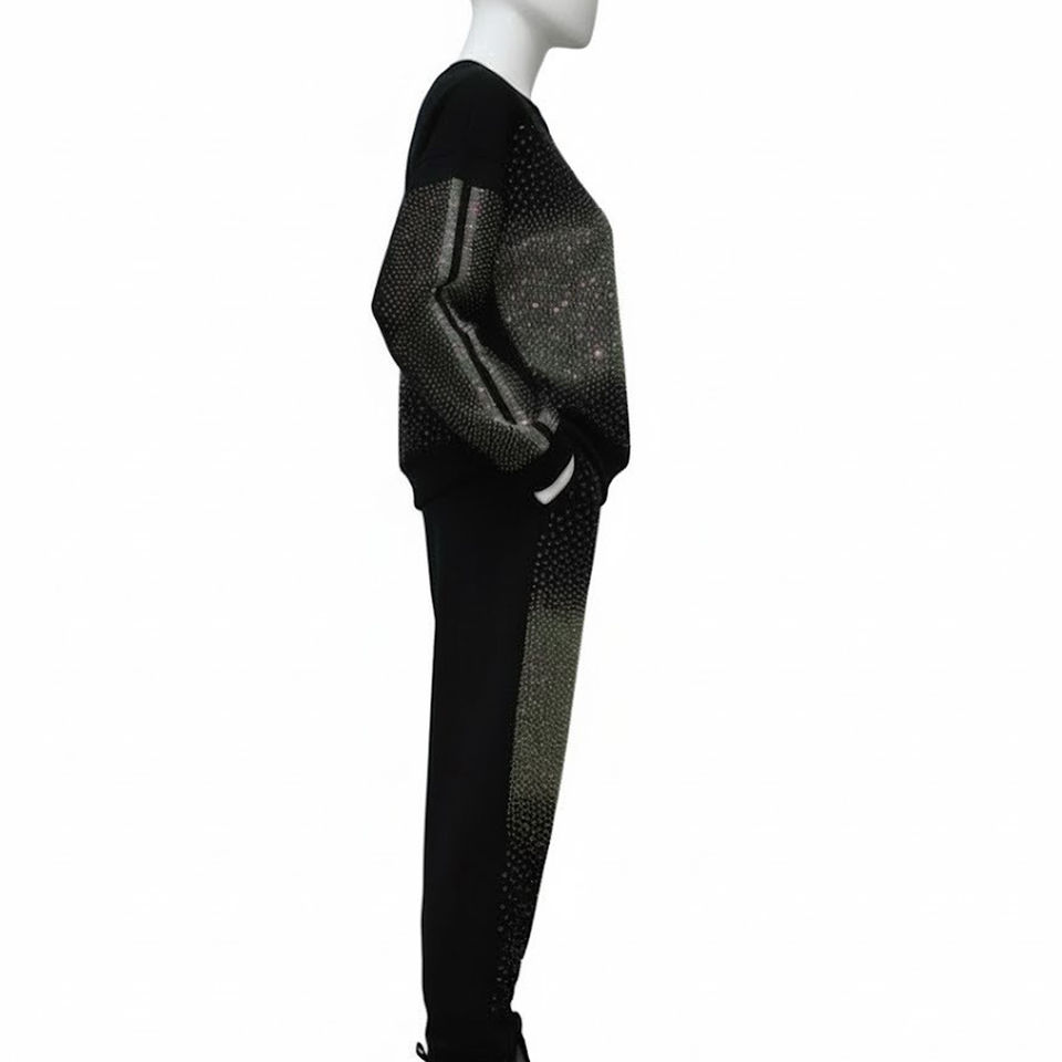 Custom Logo Printed Drop Shoulder Tracksuit High Shine Rhinestone Decorated Unisex Fashion Set For Wholesale