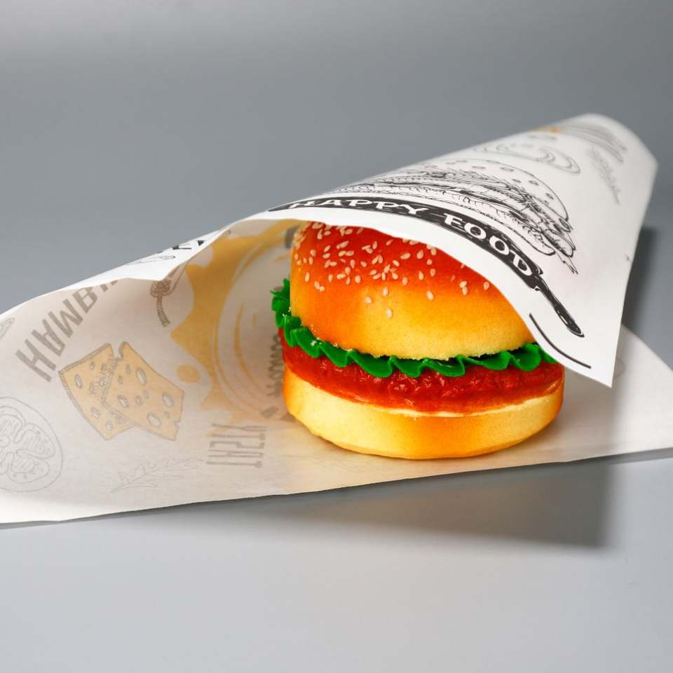 Custom Logo Printed Food Grade GreaseProof Parchment Paper Grease Proof Reusable Baking Sandwich Hamburger Bread Wrapping Pizza