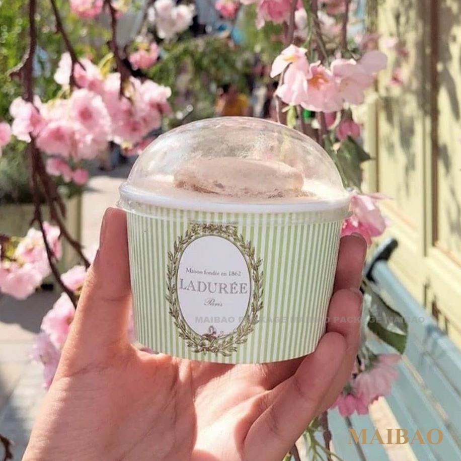 Custom Logo Printed Ice Cream Cup Frozen Yogurt Gelato Bowls 3/4/5/8/12/16oz Disposable Single Wall Paper Cup With Lid and Spoon