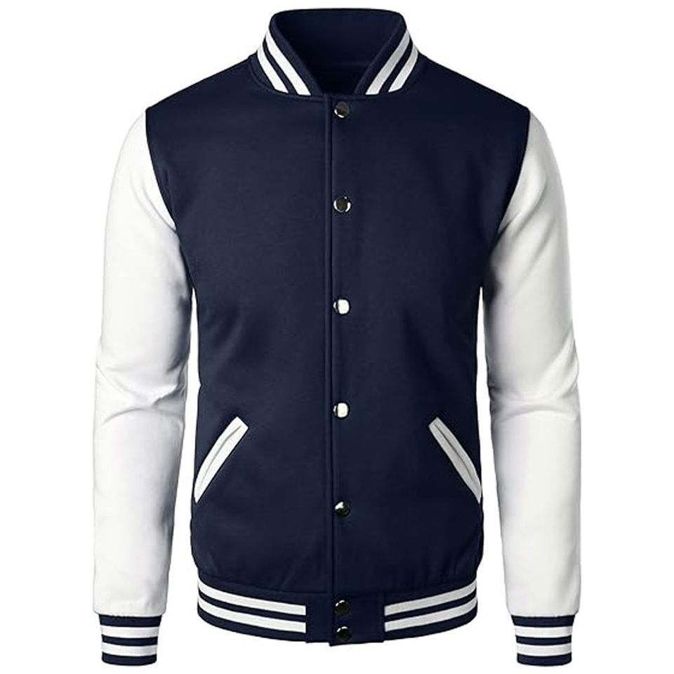 Custom Logo Printed Men's College Varsity Baseball Letterman Jackets Long Sleeve 100% Cotton Stand Collar Front Made Pakistan