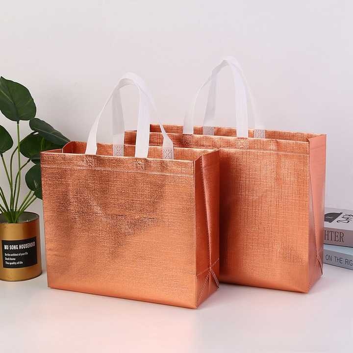 Custom Logo Printed Quilted Non-Woven Reusable Gift Tote Gold Metallic Laminated Non Woven Shopping Bags