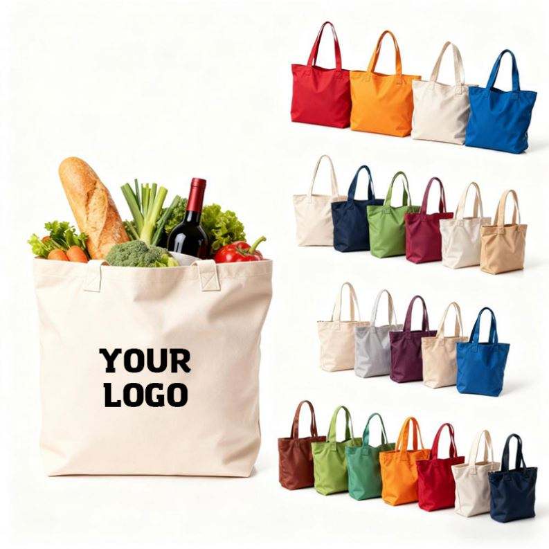 Custom Logo Printed Sublimation Blank Reusable Grocery Shopping Promotional Bags Plain Polyester Cotton Canvas Shopping Tote Bag