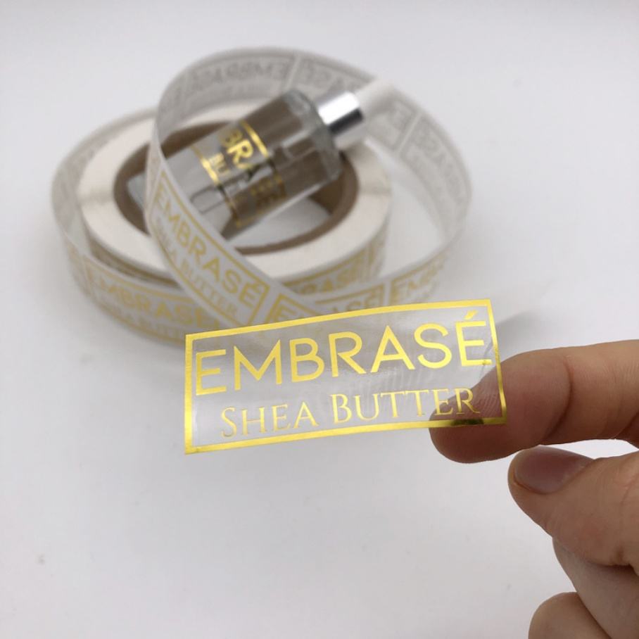 Custom Logo Printed Transparent Waterproof Eco-Friendly Skincare Bottle Label Luxury Gold Foil Die Cut Stickers Shampoo Perfume