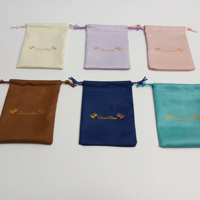 Custom Logo Printed Velvet Suede Jewelry Perfume Drawstring Bag Grey Velvet Gift Jewelry Pouchvelvet drawstring pouch
