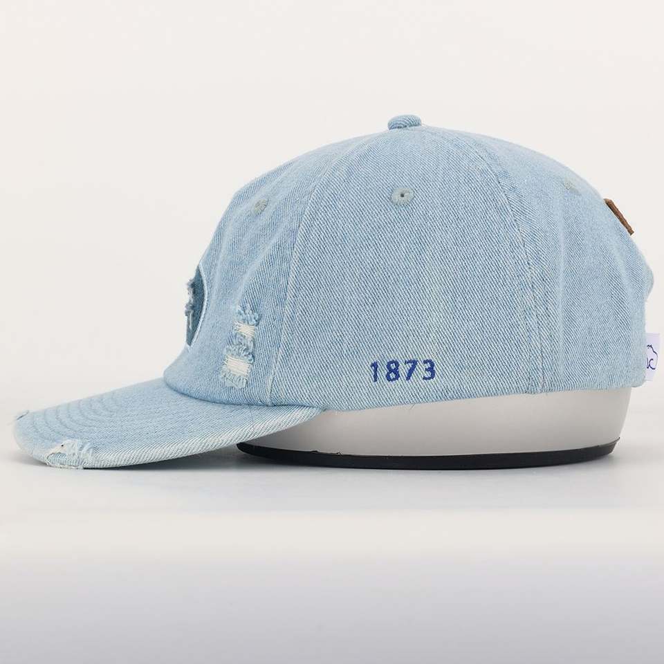 Custom Logo Printed Washed Denim Baseball Cap Woven Fabric Hip Hop Style with Scuff Hole for Outdoor Sports and Business Use