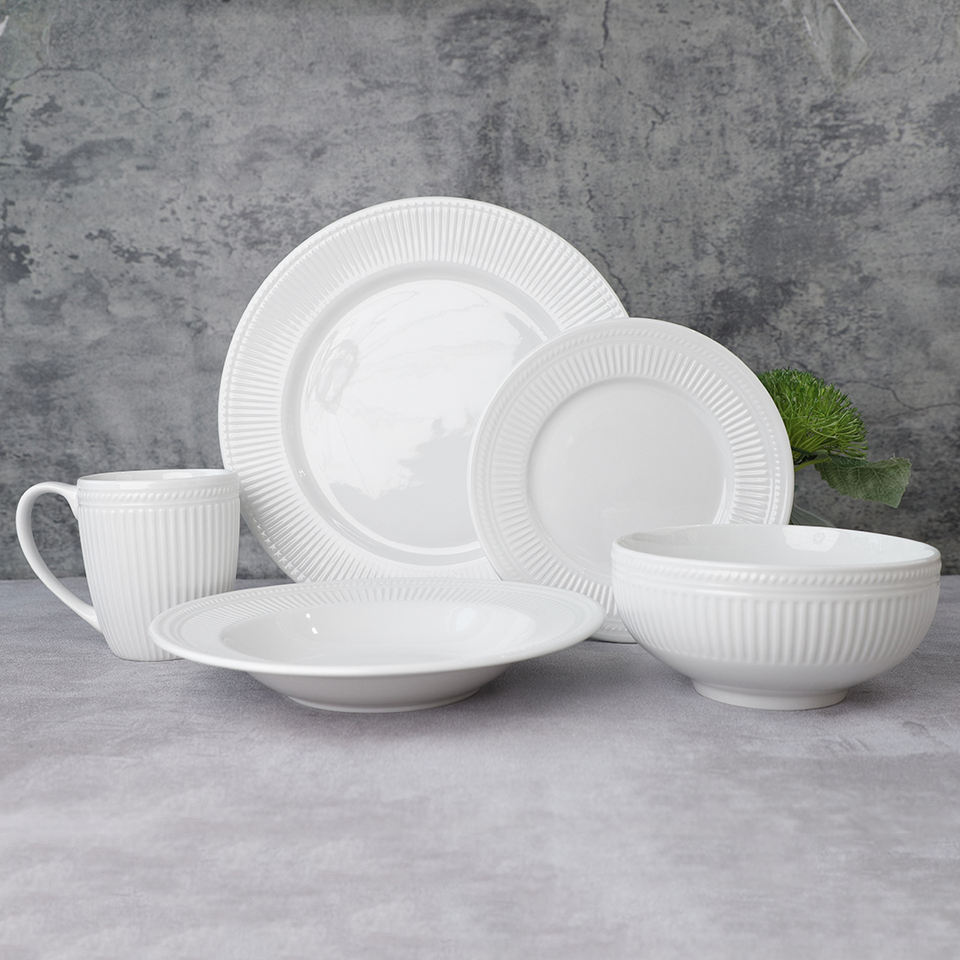 Custom Logo Printed White Porcelain Dinnerware Set Includes Bowl and Ceramic Plates