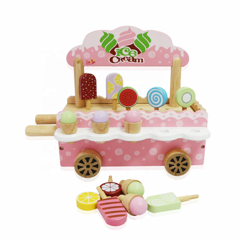 Custom Logo Printed Wooden Ice-Cream Shop Playset Durable Rubber Materials Durable Box Packing Baby Toys for Kids