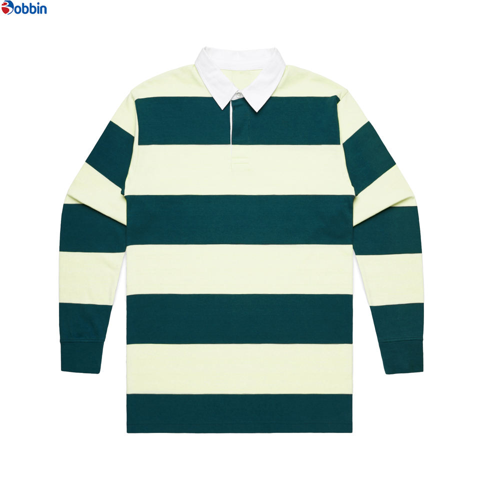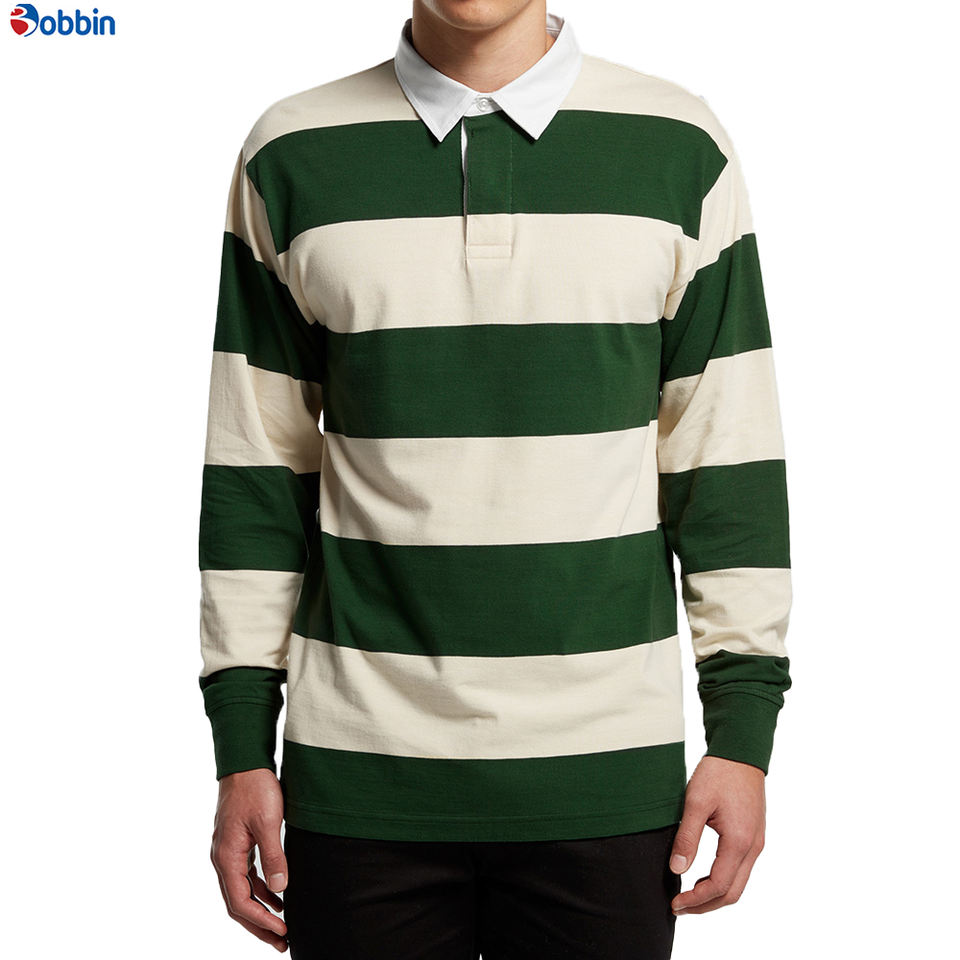 Custom Logo Printing Long Sleeve Uniform Golf Men's Polo Shirt Summer Collection New Hot Sale Green & White Color Block Stripe