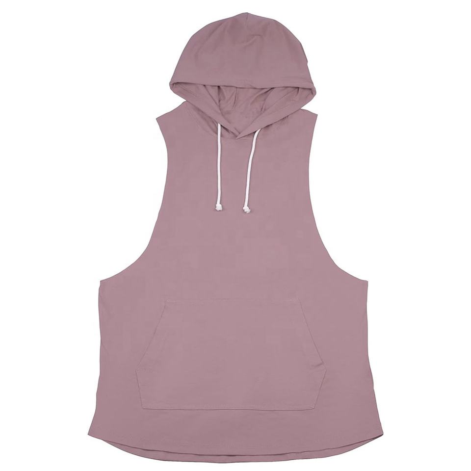 Custom Logo Printing Men's Lightweight Gym Hoodie Solid Color Quick Dry Bodybuilding Breathable Sleeveless Hoodie Men Streetwear