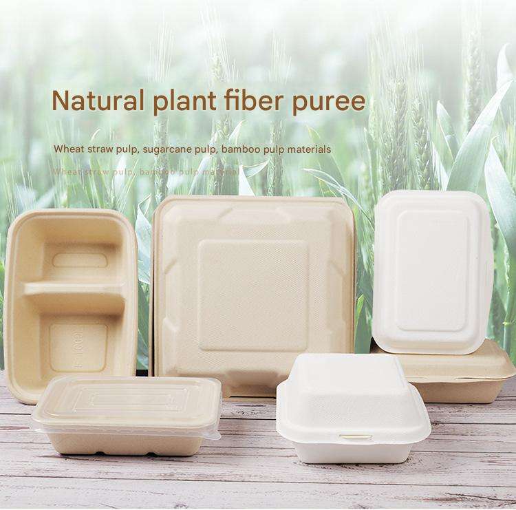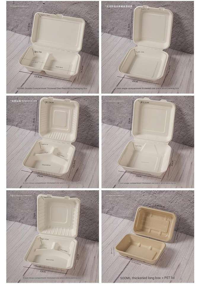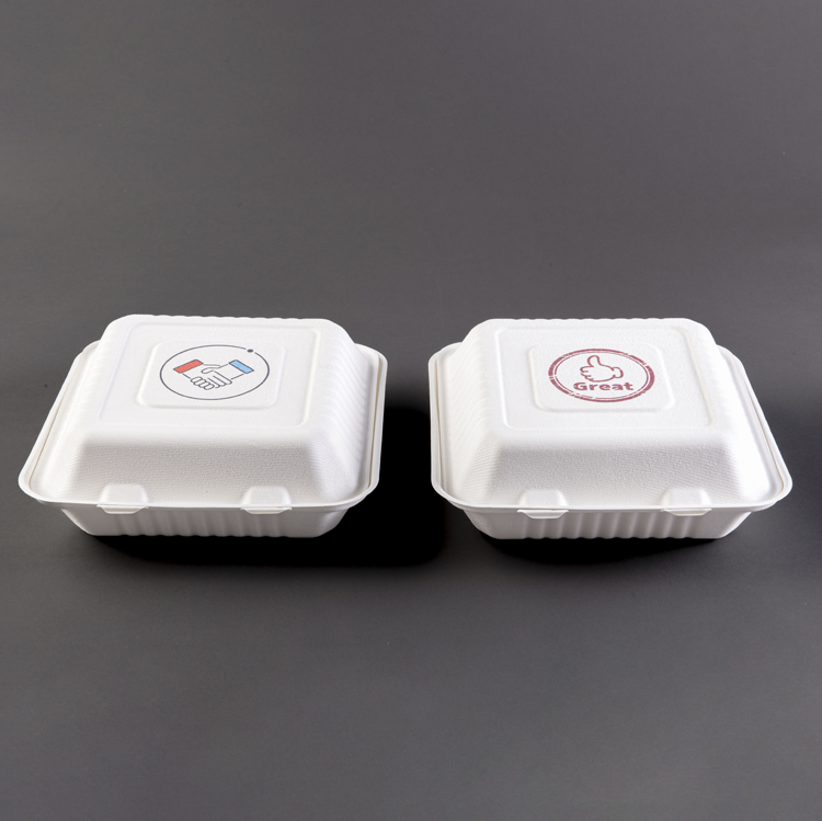 Custom Logo Printing Print Pattern Bagasse Tableware Clamshell Disposable Bagasse Lunch Box Food Container