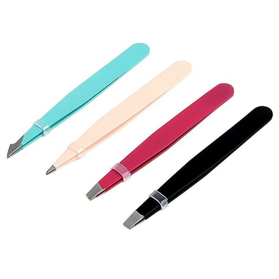 Custom Logo Private Label Professional Handmade Durable Luxury Stainless Steel Slanted Pointed Eyebrow Tweezers Reusable Hair