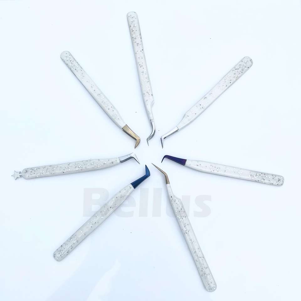 Custom Logo Private Label Stainless Steel Eyelash Tweezers Fiber Tip Lash and Volume Extension Tweezers