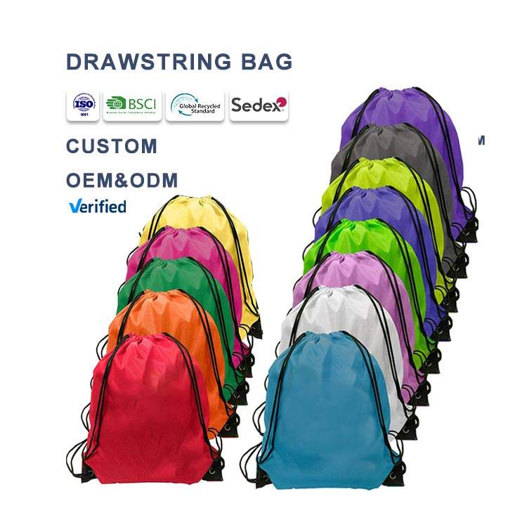 Custom Logo Promotional Gift Polyester Shopping Drawstring Bag Draw String Bags Sport Gym Backpack Shopping Bags With Logos