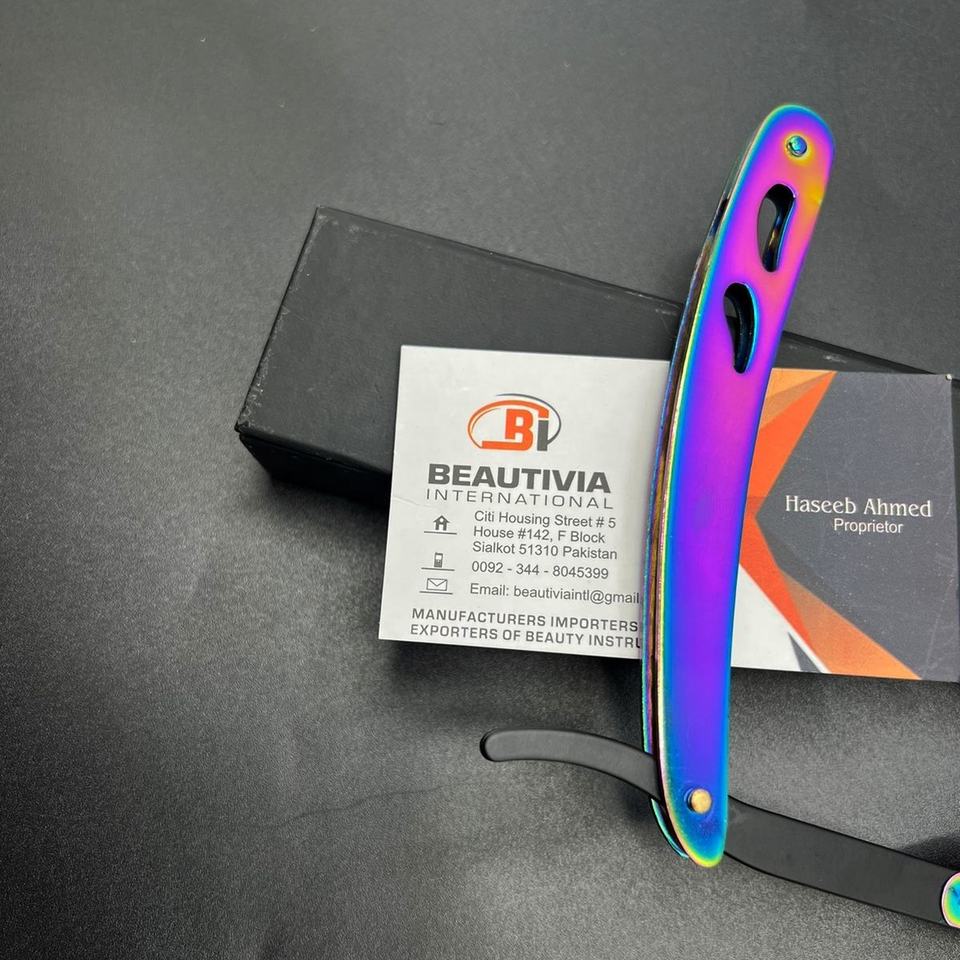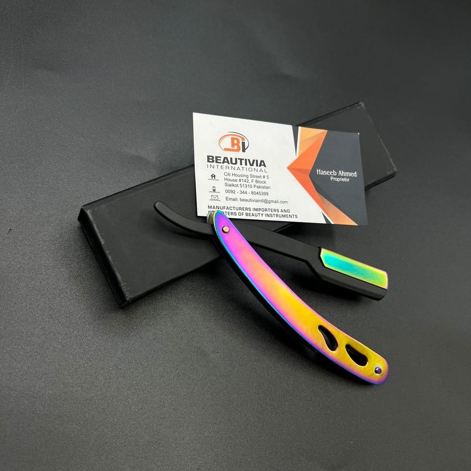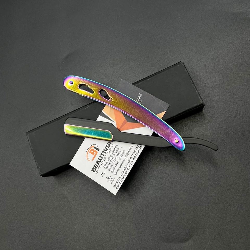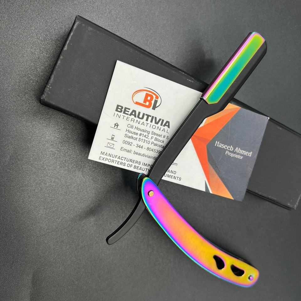 Custom Logo Rainbow Plasm Straight Cut Throat Shaving Razors Sustainable Stainless Steel Folding Edge Razor Personalized for