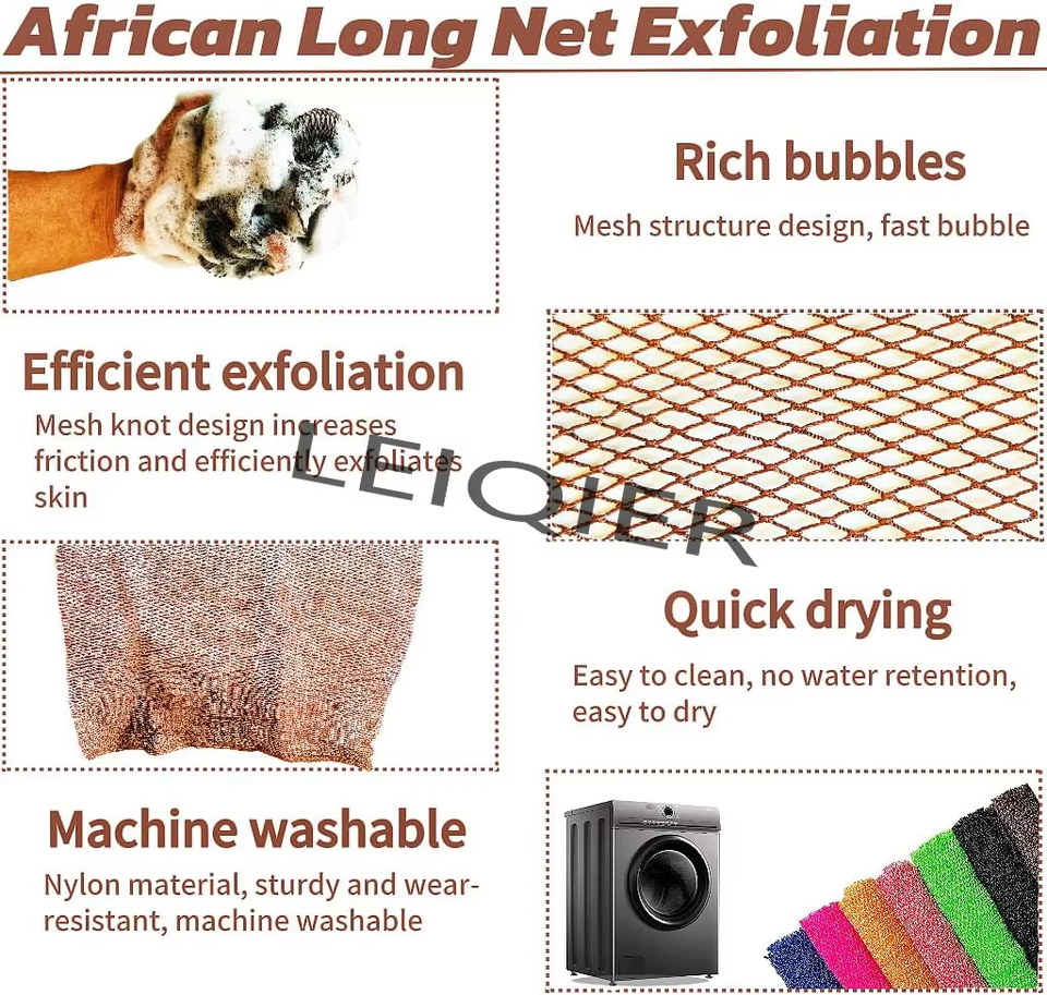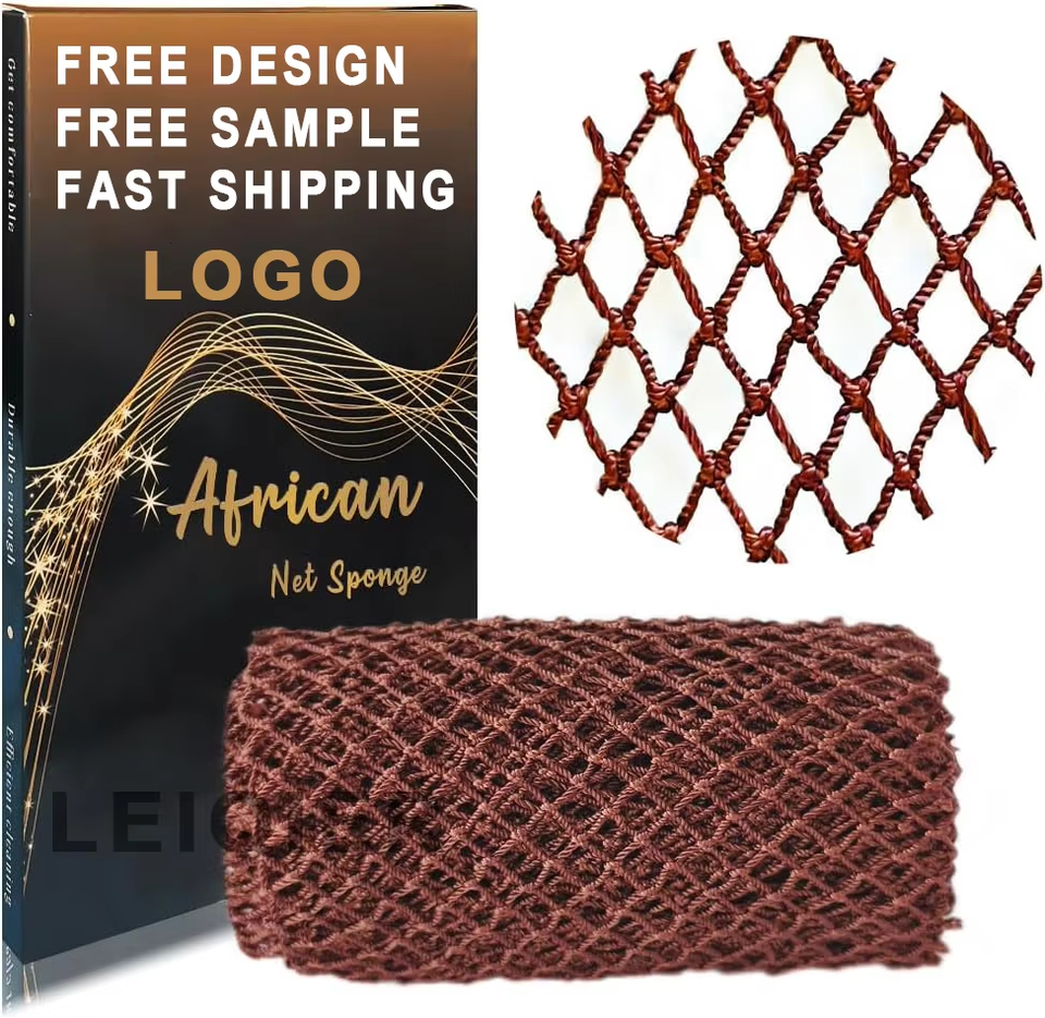 Custom Logo Real African Exfoliating Body Scrubber Long Nylon Bath Sponge Shower Wash Cloth Net Brushes African Net Sponge