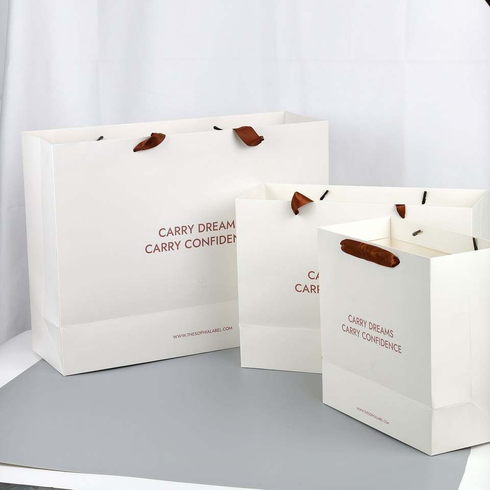 Custom Logo Recyclable Jewelry Bags with Ribbon Handle, UV & Screen Printing