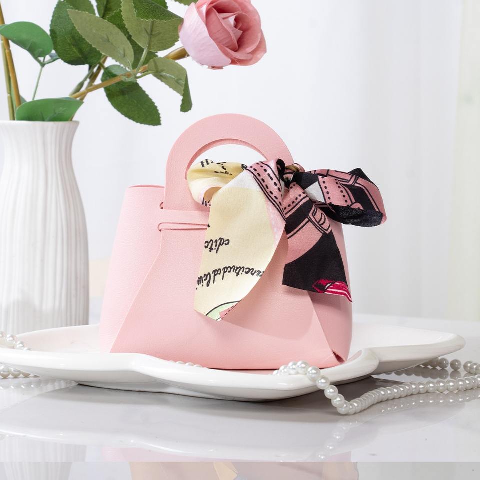 Custom Logo Recyclable Mini Leather Wedding Gift Bag Portable Sweet Favor Candy Box Leather Gifts Box With Ribbon