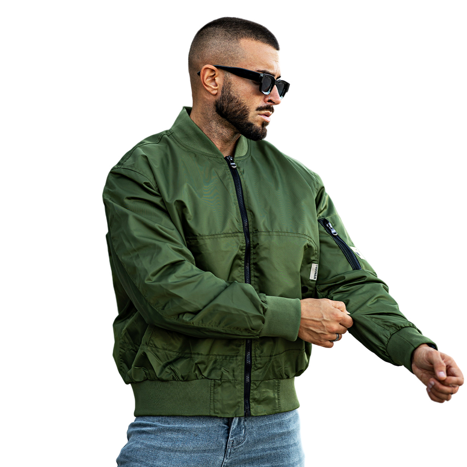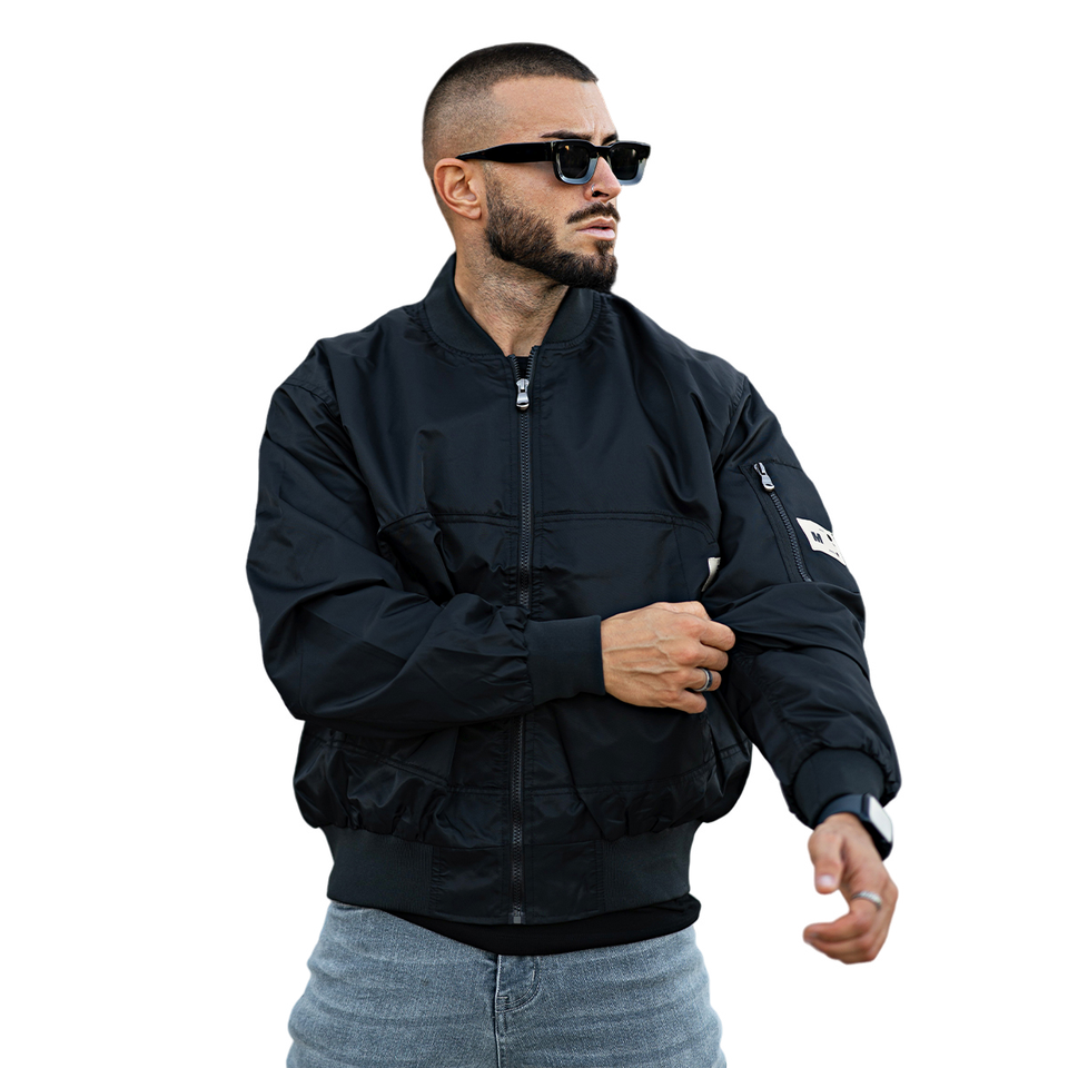 Custom Logo Red Bomber Jacket Streetwear Nylon Zip-up Side Pocket Casual Vintage Flight Jacket For Men