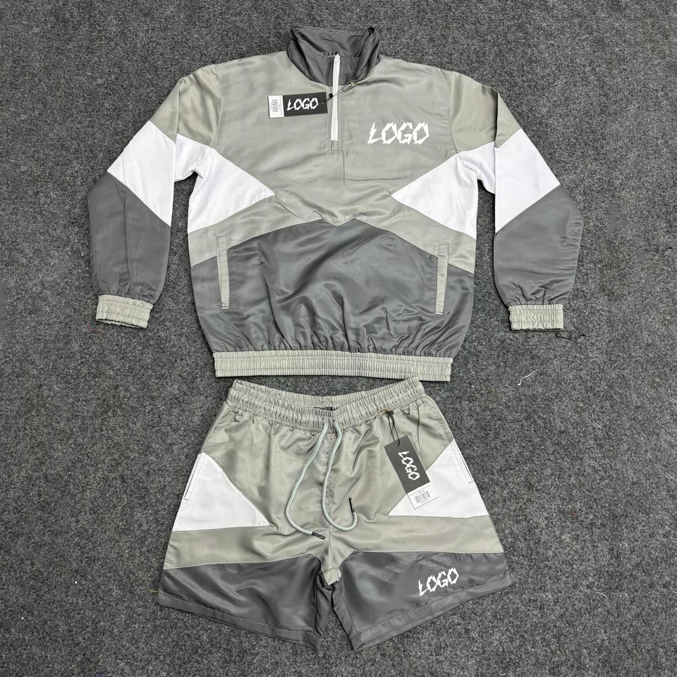 Custom Logo Hooded Casual Zip-Up Jacket & Shorts Tracksuit Set Unisex Men Organic Cotton Windproof Plus Size