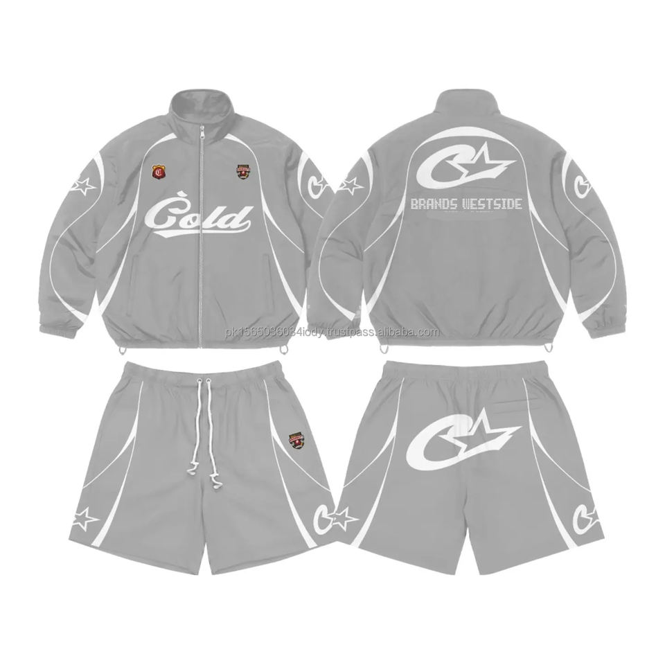 Custom Logo Reflective Patchwork Zip up Jacket Nylon Sports Shorts Sets Tracksuits Unisex for Men Windbreaker Short Sets