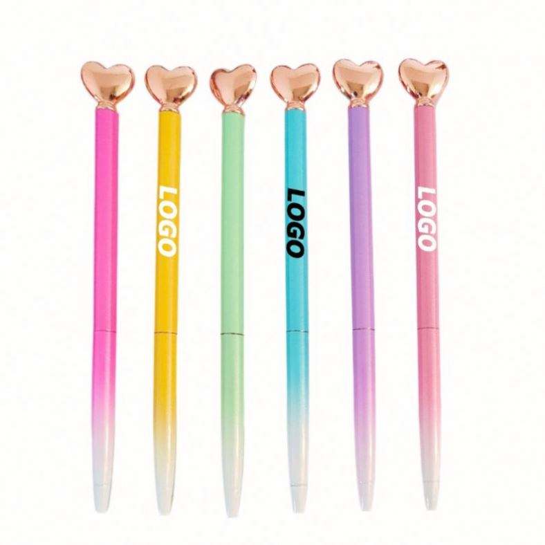 Custom Logo Retractable Ballpoint Pen - Slim Metal, Vivid Colors, Heart Shape, Office & Gift for Weddings, Birthdays
